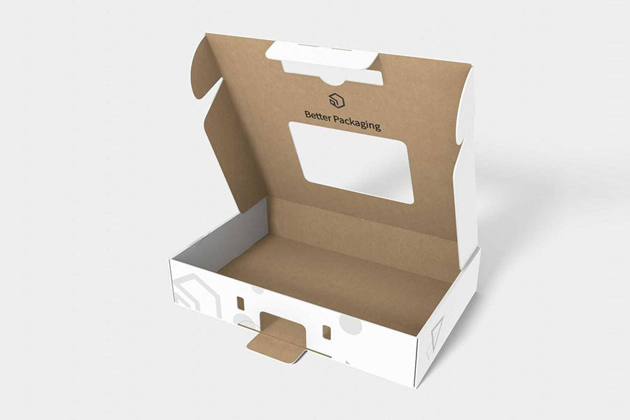 Hullámkarton expressz csomagolódoboz kialakítás, önzáró tálcás doboz, tálcás doboz, flip box